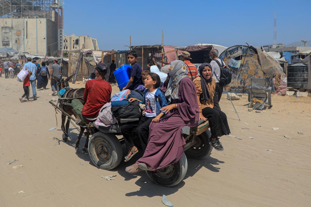 7月22日,在加沙地带南部城市汗尤尼斯,人们逃离家园。新华社发(里泽克·阿卜杜勒贾瓦德摄)