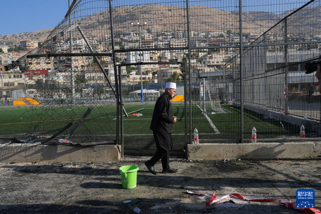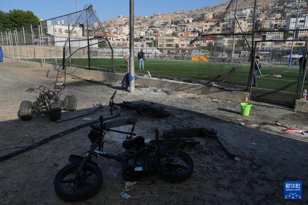 这是7月28日在以色列占领的戈兰高地城镇迈季代勒舍姆斯拍摄的火箭弹袭击现场。