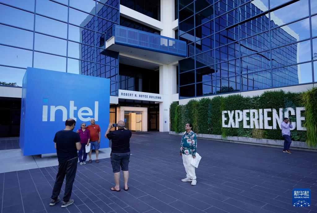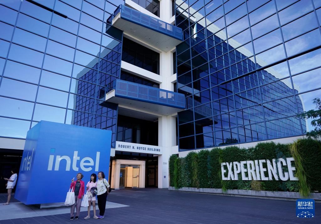 8月1日,游客在美国加利福尼亚州圣克拉拉的英特尔总部留影。新华社发(李建国 摄)