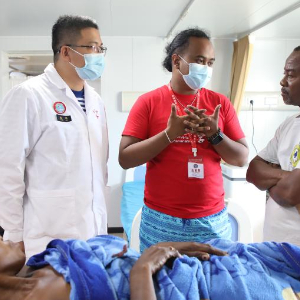 7月30日,中国海军“和平方舟”号医院船医务人员在马达加斯加开展医疗服务。