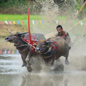 春武里府当日举行赛牛活动,以庆祝当地水稻播种季节开始。