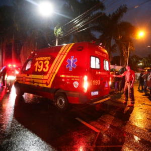 8月9日,一辆救护车在巴西圣保罗州维涅杜市坠机现场附近行驶。
