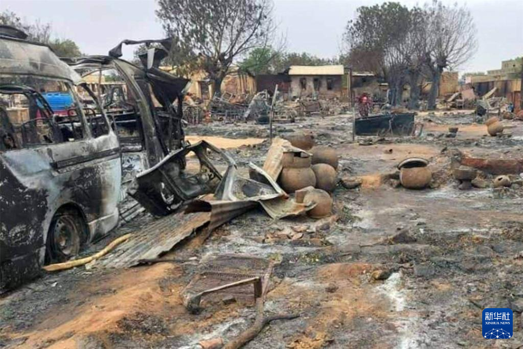 这是8月10日在苏丹北达尔富尔州首府法希尔市拍摄的在袭击中损毁的车辆和建筑。新华社发(苏丹北达尔富尔州卫生部供图)