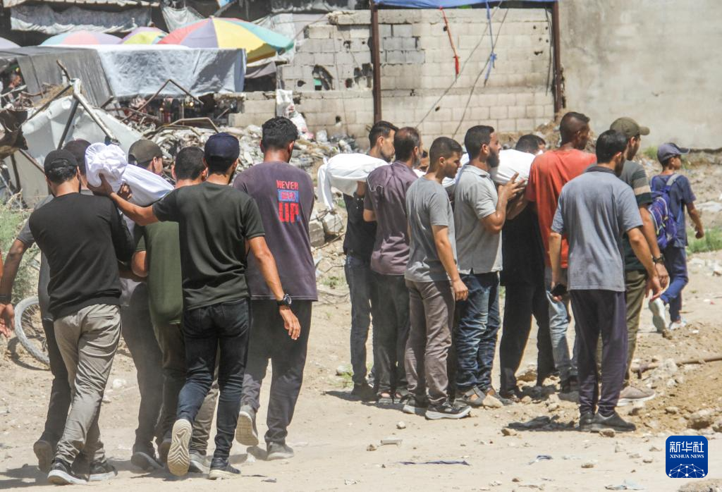 8月12日,在加沙地带北部加沙城,人们为以军袭击中的遇难者举行葬礼。新华社发(马哈茂德·扎基摄)