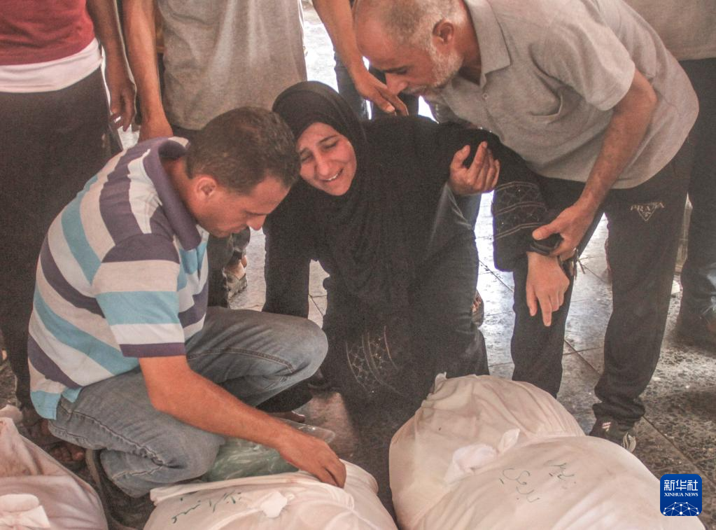 8月12日,在加沙地带北部加沙城,人们哀悼以军袭击中的遇难者。新华社发(马哈茂德·扎基摄)