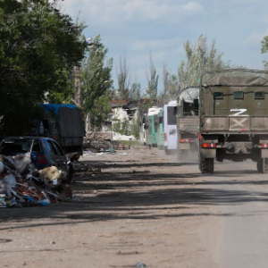 图为2022年5月20日,载着乌克兰武装人员的巴士驶离马里乌波尔。新华社发(维克托 摄)