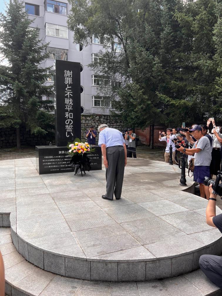 图为清水英男来到“谢罪与不战和平之碑”处忏悔谢罪