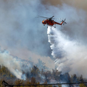 8月12日,消防直升机在希腊首都雅典附近的迪奥内进行灭火作业。新华社发(马里奥斯·罗洛斯摄)