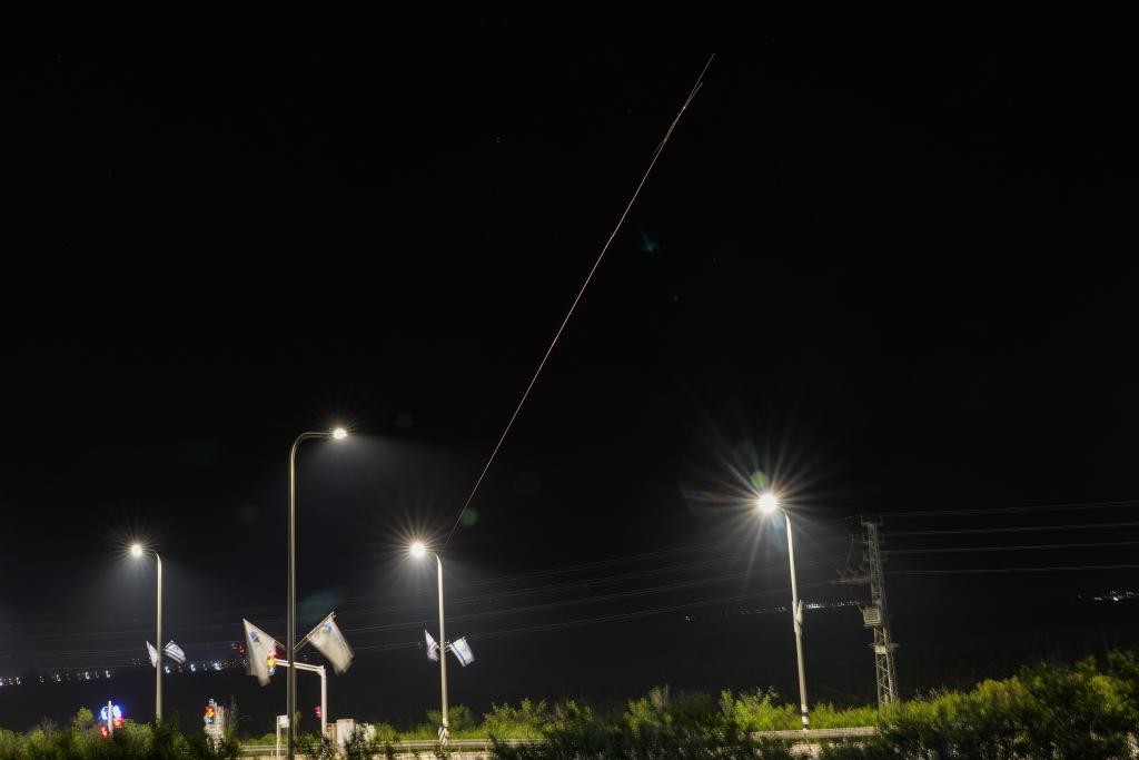 8月4日,以色列“铁穹”防空系统拦截射向以色列北部加利利地区的火箭弹。真主党当天凌晨向以色列北部发射了数十枚“喀秋莎”火箭弹。新华社/美联