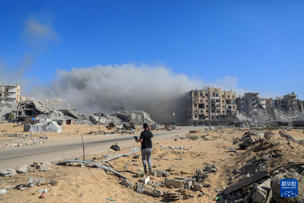 这是8月16日在加沙地带南部城市汗尤尼斯西北部的一座城镇拍摄的建筑物废墟。新华社发(里泽克·阿卜杜勒贾瓦德摄)