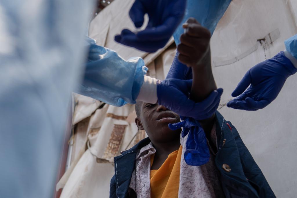 8月19日,在刚果(金)北基伍省首府戈马市郊一家医院,一名感染猴痘病毒的儿童接受治疗。新华社发