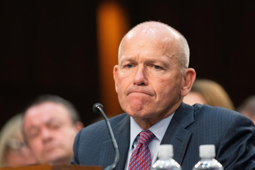2024年6月18日,在美国华盛顿,时任波音CEO戴夫·卡尔霍恩在国会出席“波音破碎的安全文化”听证会。卡尔霍恩承认企业的安全文化有瑕疵,但坚称企业正在改进,致力于提升产品安全性能。新华社记者刘杰摄