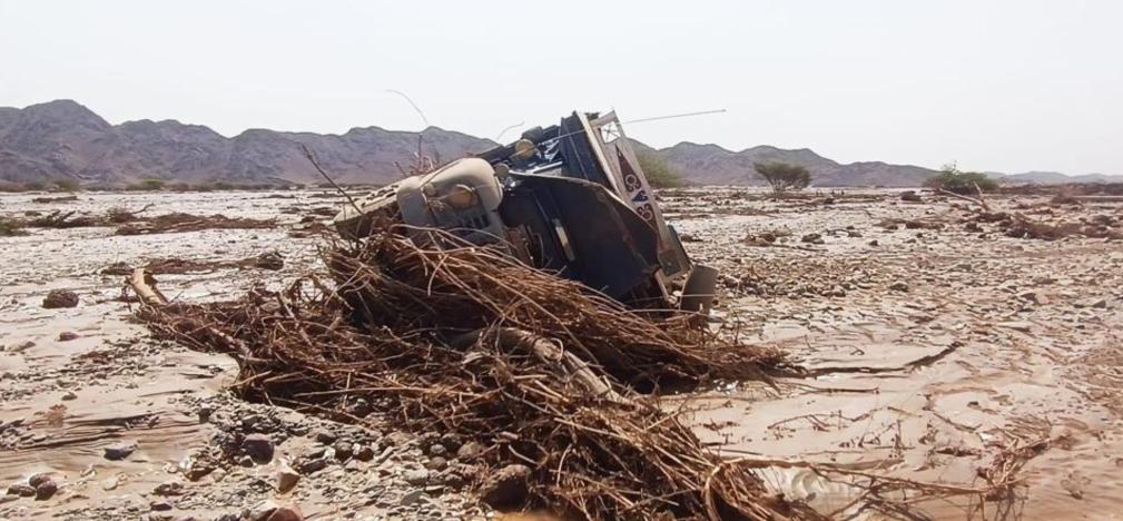这是8月26日在苏丹红海州拍摄的溃坝洪水冲毁的汽车。新华社发(苏丹主权委员会供图)