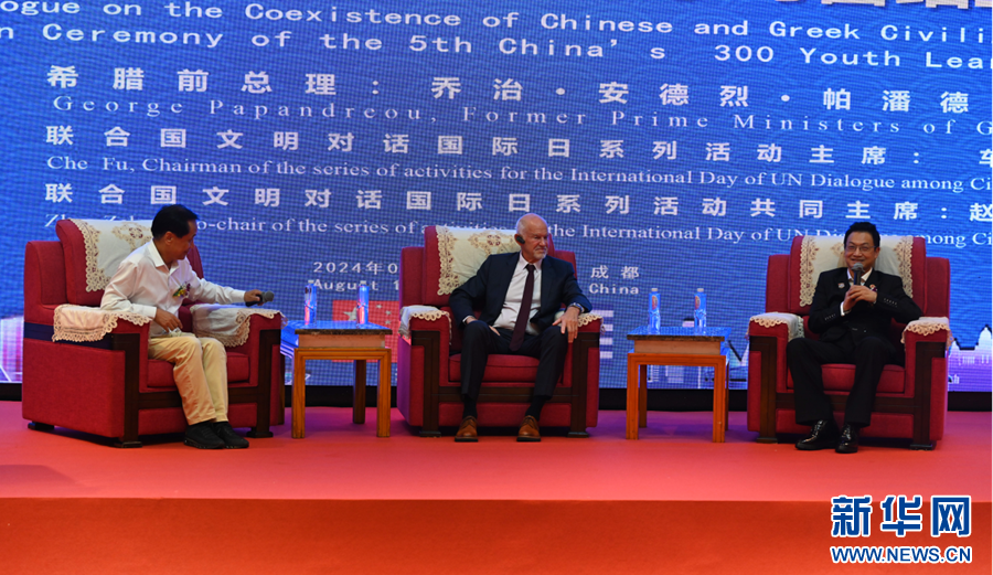 联合国文明对话国际日系列活动“中希文明交流互鉴对话”近日在四川省成都市“中华雷锋志愿者小镇”举行。希腊前总理乔治·帕潘德里欧,联合国艺术基金会主席、“2024中华雷锋志愿者特别行动计划”负责人车夫出席并开展对话。