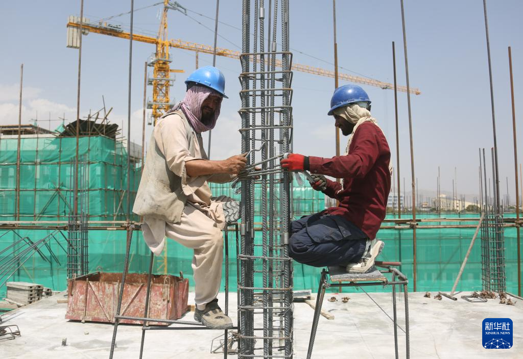 8月24日,在阿富汗首都喀布尔,工人在中国十九冶集团有限公司援建的住宅楼项目工地施工。新华社发(塞夫拉赫曼·萨菲摄)