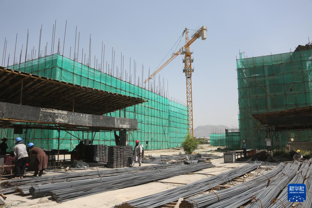 这是8月24日在阿富汗首都喀布尔拍摄的中国十九冶集团有限公司援建的住宅楼项目施工现场。新华社发(塞夫拉赫曼·萨菲摄)