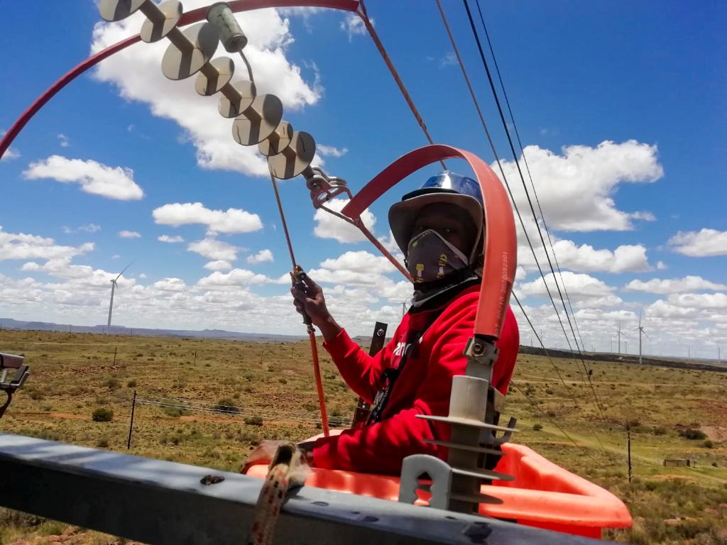 2021年12月24日,在南非北开普省德阿镇,达斯温·巴松实习期间在德阿风电项目学习电缆维护。(新华社发 受访者供图)