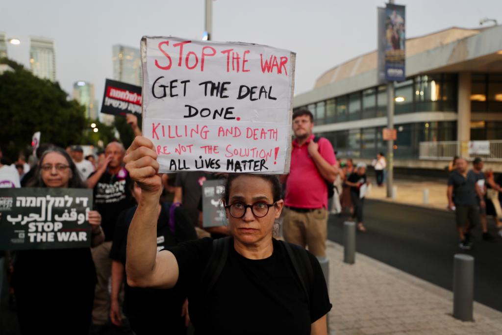 1日晚,在位于特拉维夫的以色列国防部附近及位于耶路撒冷的议会大楼一带,新华社记者看到示威现场人山人海,人们高举停火标语和被扣押人员的照片,怒喊“现在就达成协议!”。2日,示威者堵住位于耶路撒冷的以色列总理府门前十字路口,导致车辆无法通行。