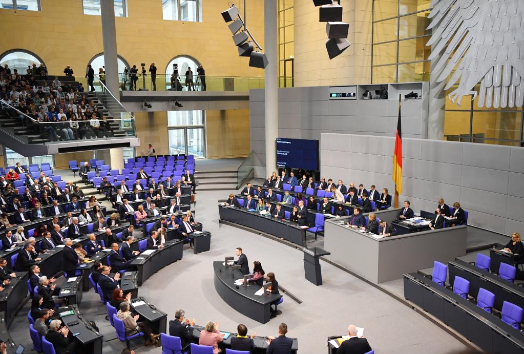 2023年1月25日,德国总理朔尔茨在位于柏林的德国联邦议会接受问询。新华社记者任鹏飞摄