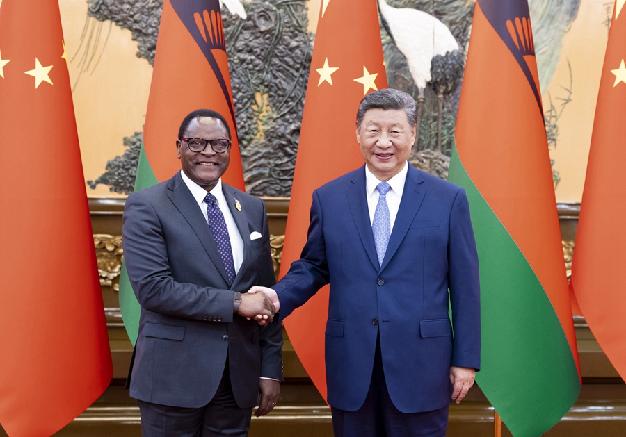 9月3日上午,国家主席习近平在北京人民大会堂会见来华出席中非合作论坛北京峰会的马拉维总统查克维拉。