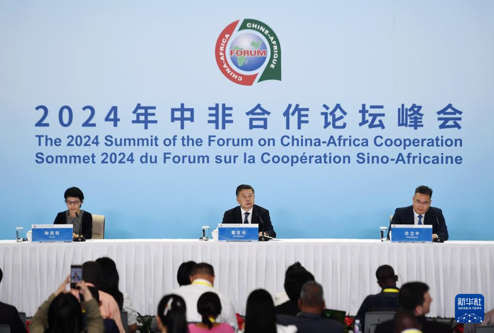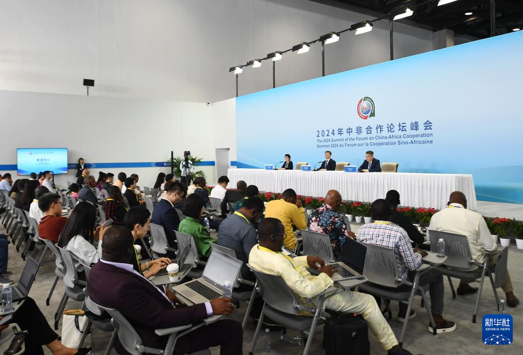 9月4日,2024年中非合作论坛峰会新闻中心举行吹风会,中共湖南省委外事工作委员会办公室副主任戴志光、湖南省商务厅副厅长邓卫平介绍湖南省对非合作情况,并回答记者提问。新华社记者 张晨霖 摄