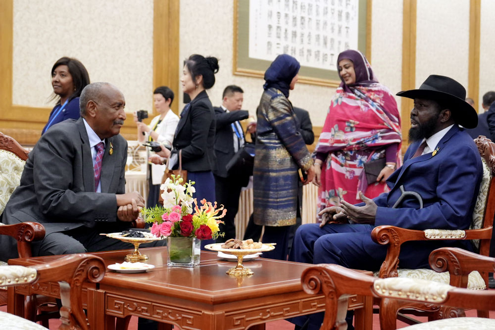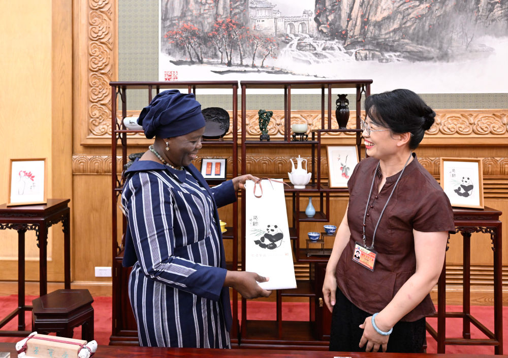 这是参加宴会的非方及国际贵宾在宴会前交流。