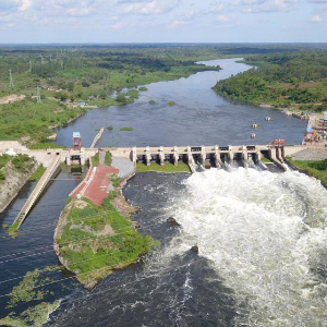 这是位于白尼罗河上的乌干达卡鲁玛水电站航拍画面(2023年12月14日拍摄)。新华社发(王剑摄)