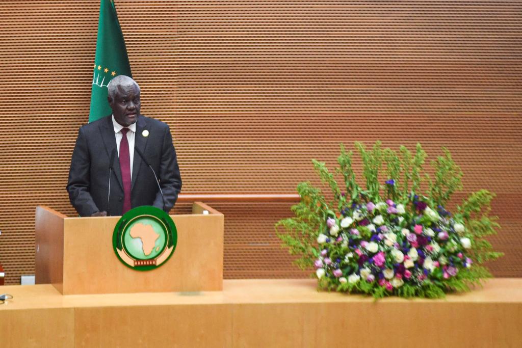 2月17日,在埃塞俄比亚首都亚的斯亚贝巴,非盟委员会主席法基在非盟第37届首脑会议开幕式上发言。新华社发(迈克尔·特韦尔德摄)