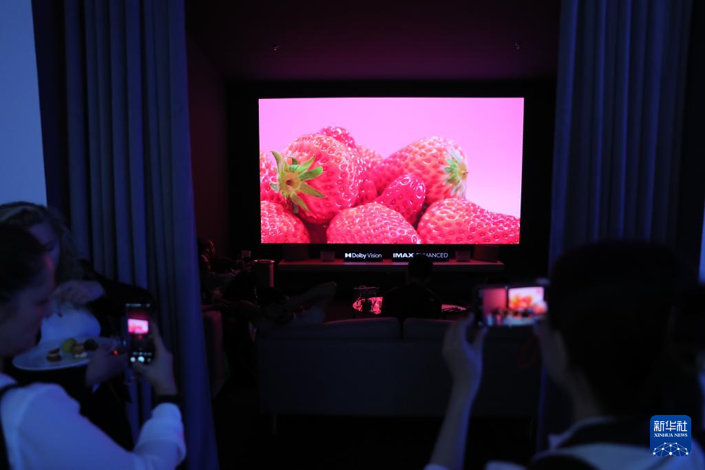 9月6日,在德国柏林国际消费电子展海信展区,参观者观看新款Mini LED电视。