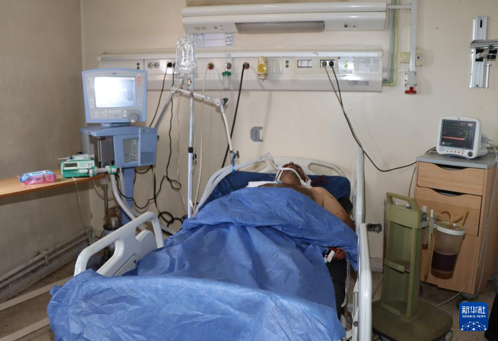 9月9日,在叙利亚中部哈马省迈斯亚夫地区,空袭中的一名伤者在医院接受治疗。新华社发