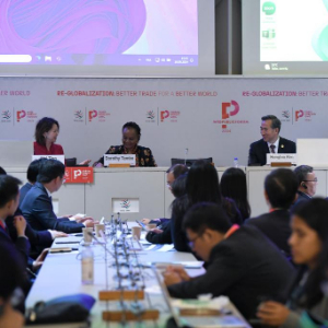 这是9月10日在瑞士日内瓦世界贸易组织总部拍摄的“构建更加绿色和具有韧性的供应链”研讨会现场。新华社记者 连漪 摄