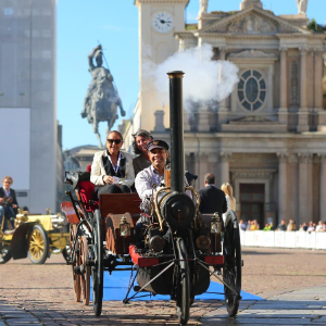 9月13日,在意大利都灵,参加车展的车辆经过市中心罗马街。