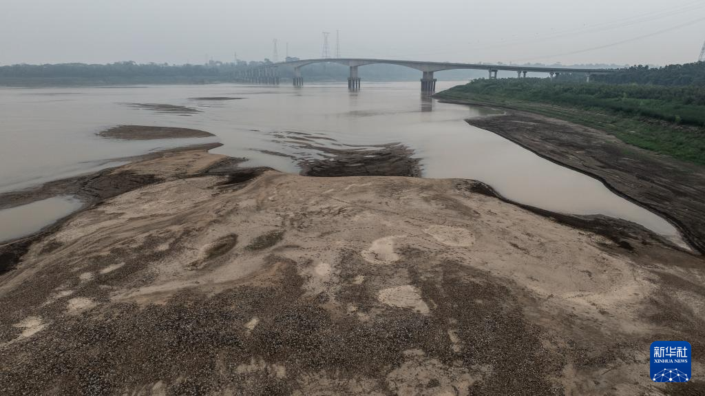 这是9月12日在巴西朗多尼亚州波多韦柳拍摄的马代拉河(无人机照片)。巴西地质调查局的数据显示,亚马孙河流域的马代拉河已经达到历史最低水位。新华社记者 王天聪 摄