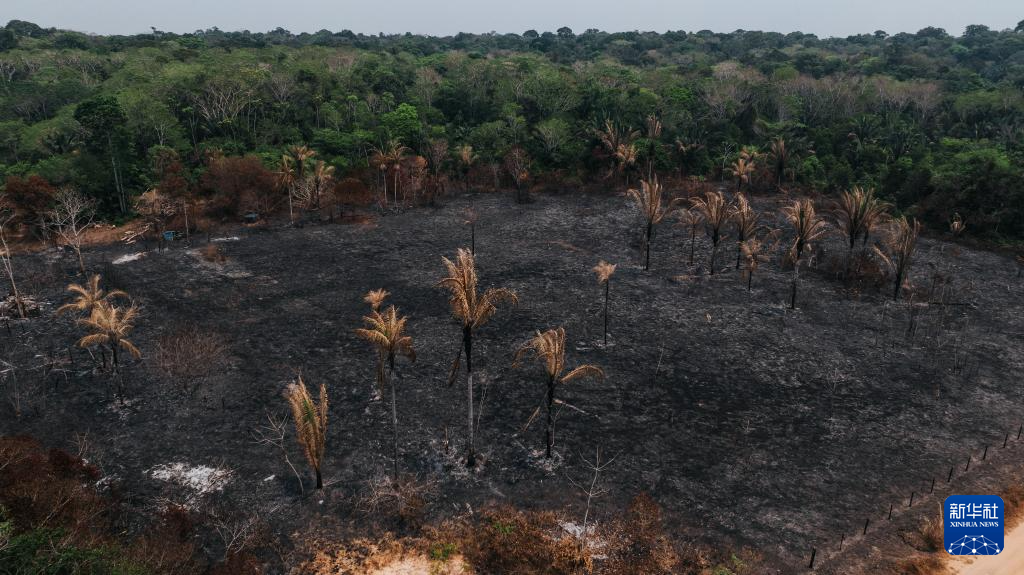 这是9月12日在巴西朗多尼亚州波多韦柳拍摄的一处发生过火灾的地点(无人机照片)。新华社记者 王天聪 摄