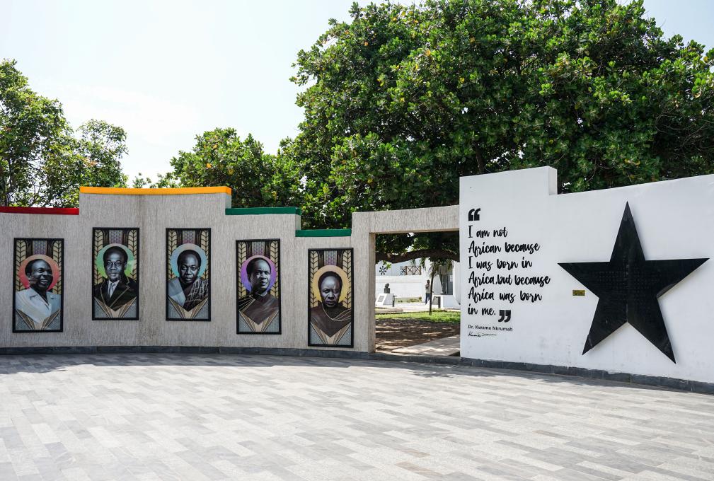 今天,恩克鲁玛的塑像屹立在加纳首都阿克拉市中心的恩克鲁玛陵园。这位加纳首任总统表情坚毅,左手握拳,右手指向远方,迈开坚定的步伐。陵园内一面白色墙上印着恩克鲁玛的名言:“我是非洲人,不是因为我出生在非洲,而是因为非洲在我心中诞生。”