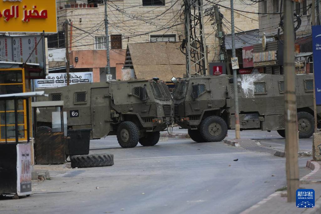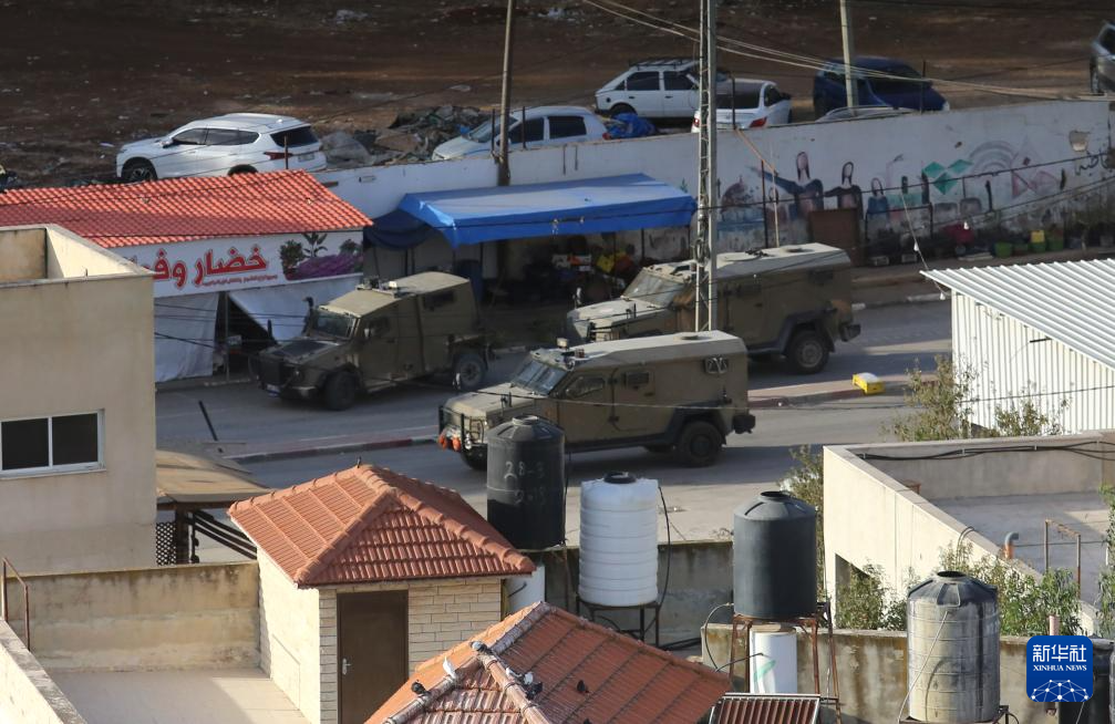 这是9月19日在约旦河西岸北部卡巴提亚镇拍摄的以军车辆。新华社发(尼达尔·艾仕塔耶摄)