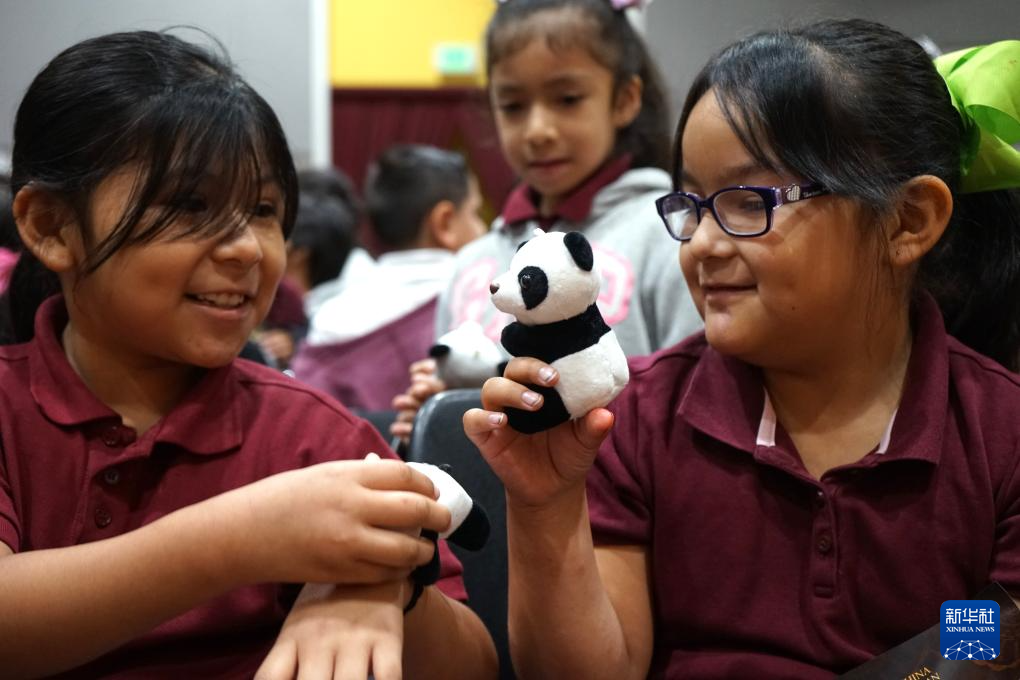 演出结束时,演员们向观众赠送熊猫纪念品,造型各异的熊猫玩偶、挂饰、头饰让当地学生爱不释手。“大熊猫是我最喜欢的动物,它们太可爱了。我已经迫不及待想去动物园看从中国来的大熊猫了。”8岁的亚历克萨说。