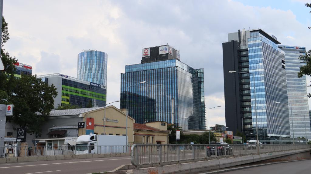 这是7月26日拍摄的位于罗马尼亚首都布加勒斯特的高科技企业入驻的楼群。新华社记者张改萍摄