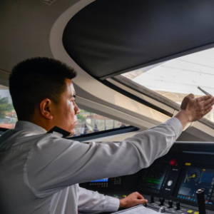 在国内工作时,张跃曾在中国第一条时速350公里的高铁京津城际铁路上学习锻炼过,现如今,他又驾驶着中国制造的动车组奔驰在雅万高铁上。