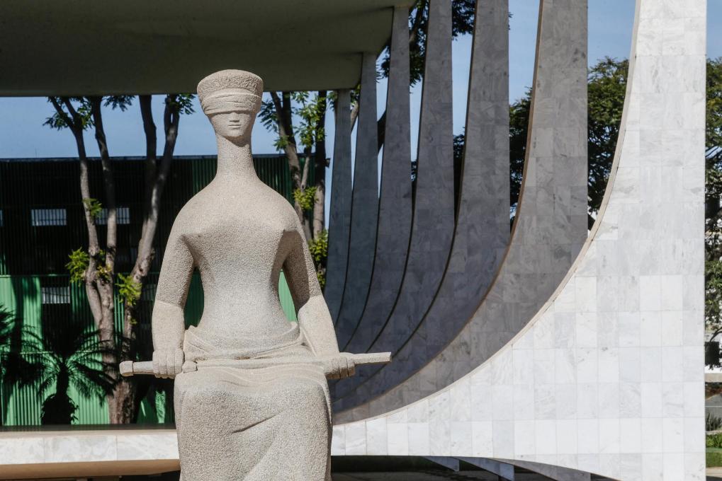 这是2023年5月22日在巴西首都巴西利亚三权广场联邦最高法院前拍摄的一尊雕像。新华社发(卢西奥·塔沃拉摄)