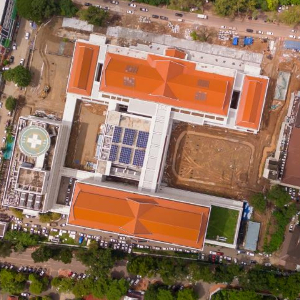 这是9月11日在老挝首都万象拍摄的中国援老挝玛霍索综合医院(无人机照片)。