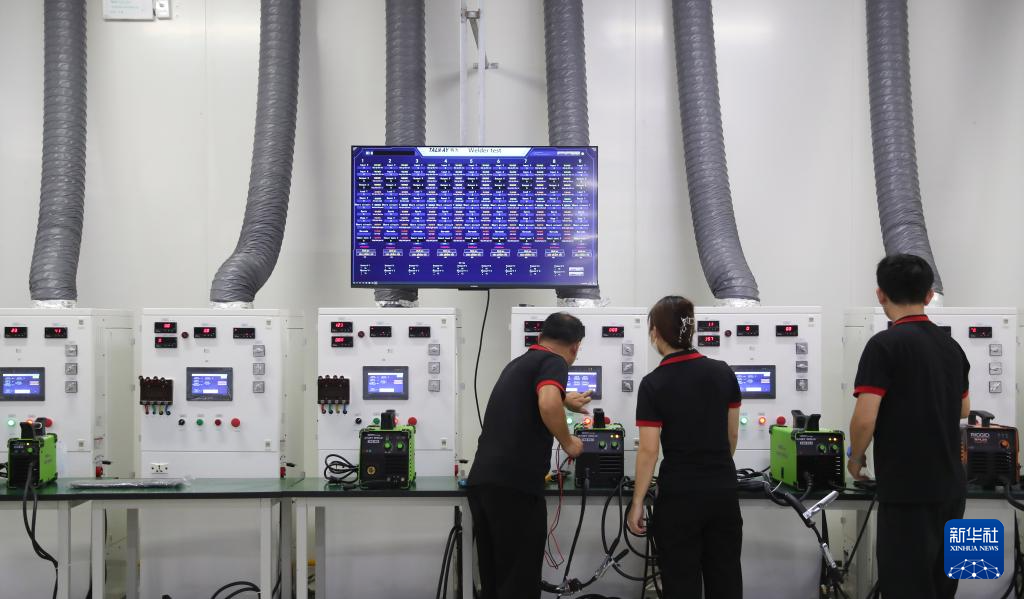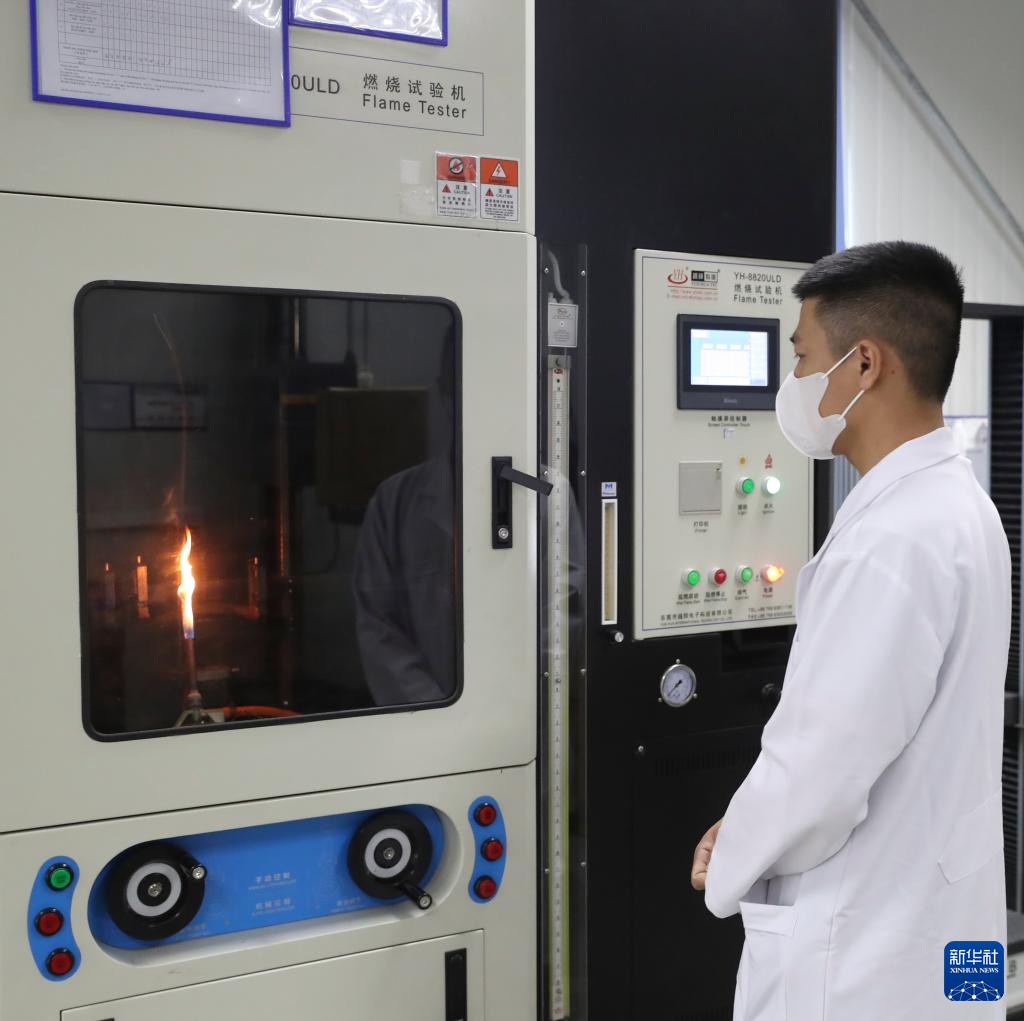 10月12日,技术人员在越南北宁省隶属上海广为电器集团的越南特为有限公司实验室检测产品。新华社记者 姚琪琳 摄