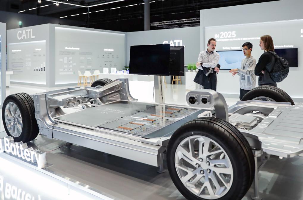 9月11日,人们在德国法兰克福国际汽车零配件及售后服务展览会上参观宁德时代展台。新华社记者 张帆 摄