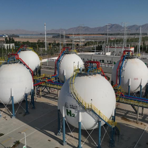 记者在项目现场看到,蓝天白云下,白色的球形储氢罐整齐地林立在厂区之中。中控室里,工作人员一按下按钮,位于天山脚下、远在厂区约20公里之外的大片光伏组阵的运营情况就呈现在墙上的大屏幕中。整个项目的产氢量、储氢量等数据通过电脑系统可以实时感知和呈现。