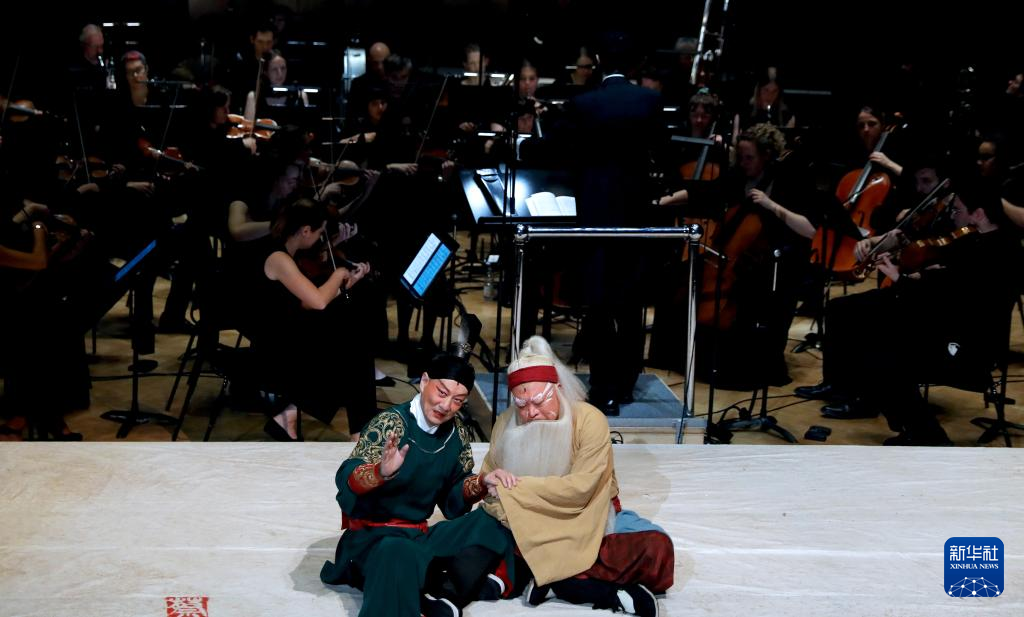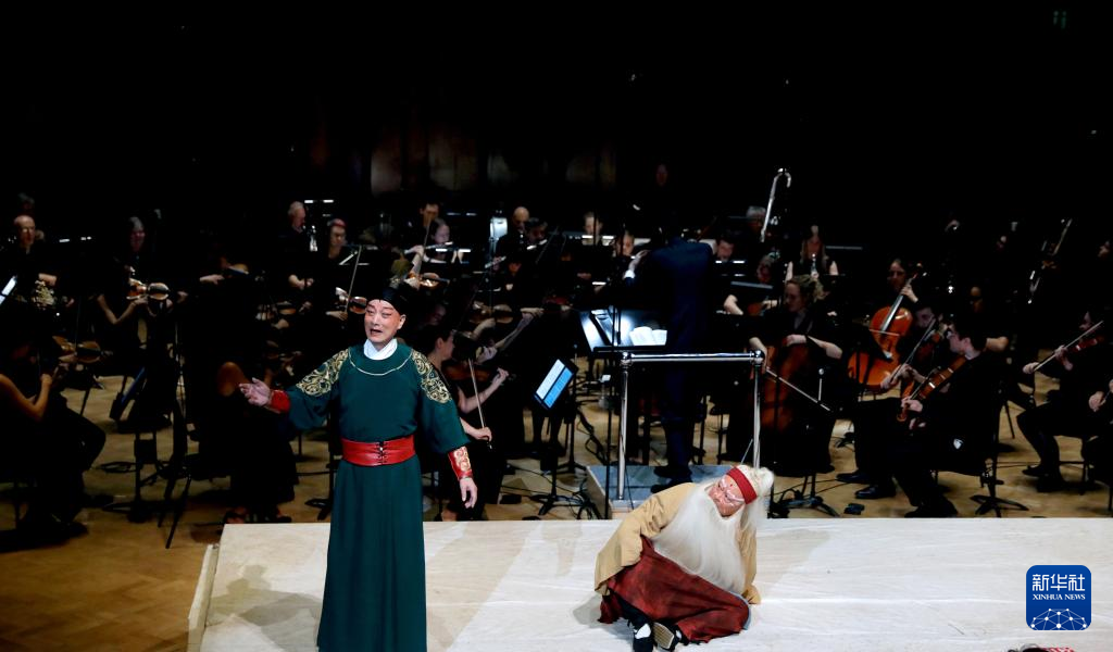10月17日,在英国伦敦,演员和管弦乐队乐手在交响剧诗《英雄生涯·蔡伦》中表演。新华社记者 李颖 摄