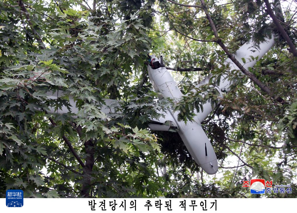 这张朝中社发布的照片显示的是朝方发现的坠落的无人机。新华社/朝中社