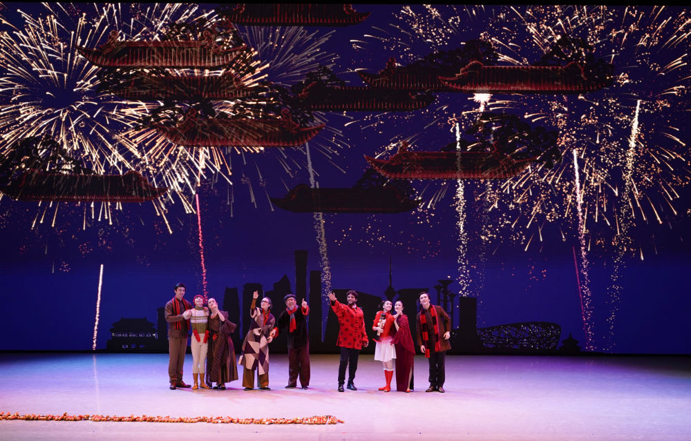 2024年1月27日晚,在阿联酋首都阿布扎比酋长国皇宫剧院,中国中央芭蕾舞团演员在演出中国贺岁芭蕾舞剧《过年》。新华社发(中央芭蕾舞团供图)