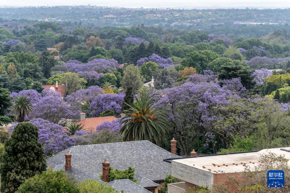 这是10月22日在南非约翰内斯堡拍摄的盛开的蓝花楹。