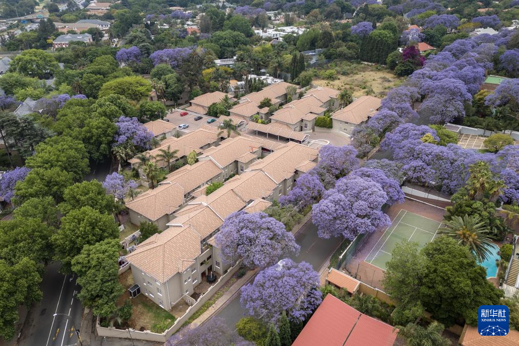 这是10月22日在南非约翰内斯堡拍摄的盛开的蓝花楹(无人机照片)。