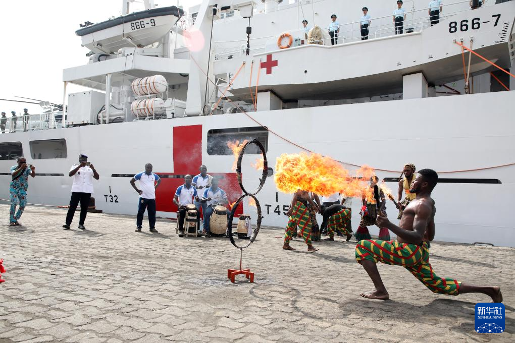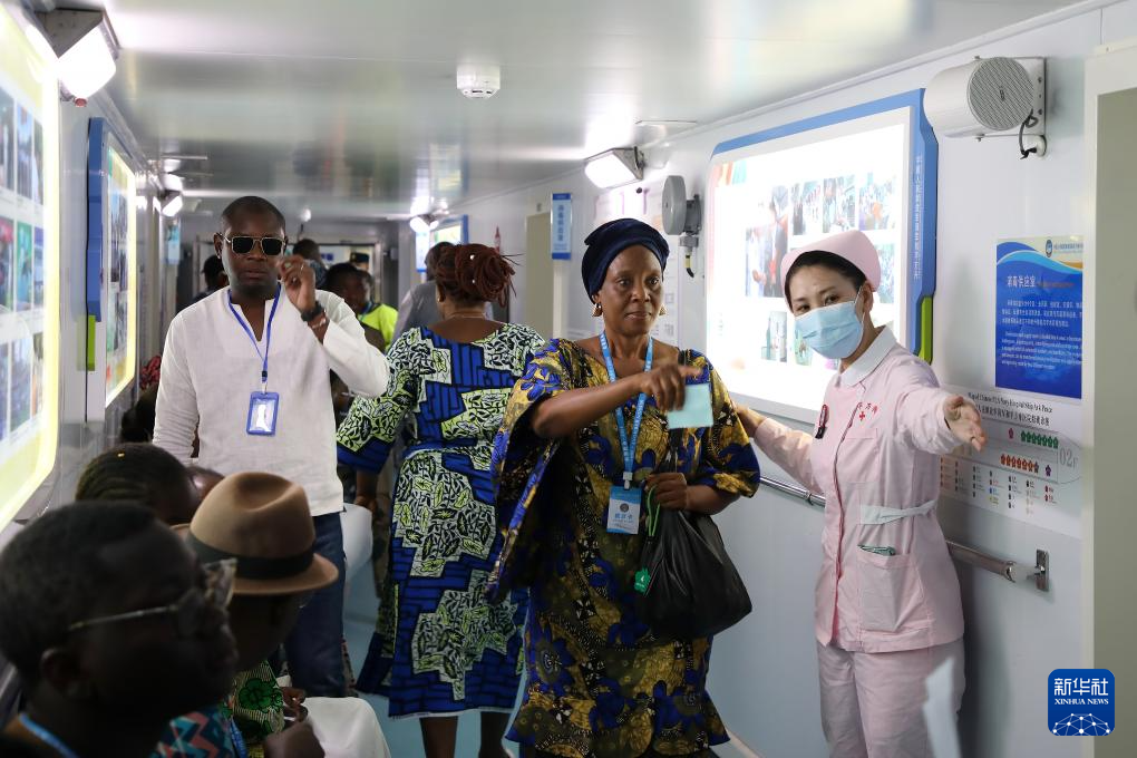 10月21日,中国海军“和平方舟”号医院船在贝宁科托努开展医疗服务。新华社发(刘志磊摄)